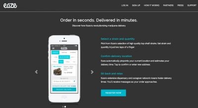 Eaze checks the medical eligibility of those who register at eazeup.com for the “on-demand healthcare delivery service” where users place orders using smartphones or tablet computers.