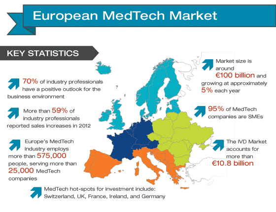 Looking at recent industry activity, the report shows that the value of completed medtech M&A deals jumped 363% during the first half of 2014 compared with the same period in 2013. M&A activity will continue on a large scale; when Medtronic and Covidien join forces next year, the $42.9 billion deal will mark the single biggest merger in the sector’s history. Likewise, the $13.4 billion merger between orthopedic powerhouses Zimmer and Biomet, also set to close in 2015, will have profound changes for the orthopedic segment of the market.