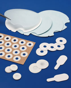 Standard and custom die-cut microporous PTFE membranes require no lamination and are suitable for filtering liquids and gases in industrial instruments and equipment. The robust Mupor membranes feature tensile strength up to 20 N/mm2, are noncytotoxic, and can be sterilized by steam and EtO methods. Suited for the filtration of aggressive organic solvents, concentrated acids, alkalis, and cryogenic fluids, they are distinguished by a 3-D pore structure that resists closure under pressure. The membranes are available in pore sizes of 0.5–50 µm, thicknesses of 50–3000 µm, and widths of up to 330 mm. They can be supplied with an optional polypropylene laminate backing. The membranes can be rotary die–cut for high-volume production and delivered in special packaging such as rolls or polybags.