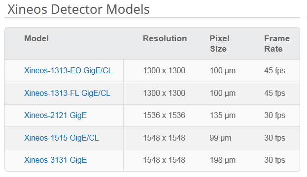 Teledyne DALSA’s Xineos products serve both panoramic and Medium Field of View (MFOV) Cone Beam CT applications. Xineos's advanced capabilities include full frame 30 frames per second performance with full resolution 100µm pixels, the industry's lowest electronic noise and a Gigabit Ethernet interface.