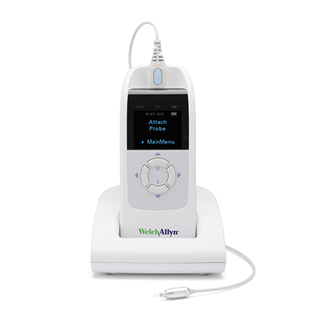 Welch Allyn is releasing its next generation OAE (otoacoustic emission) Hearing Screener, a pediatric device that tests hearing by detecting how hair cells in the cochlea respond to sound. To perform the test, a clinician simply places the probe into the child’s ear and pushes a button. The device produces two different tones in the probe, and a microphone inside the tip detects the OAE response to the sound. If the levels are normal, the device displays a “pass,” and if something is not right it suggests to “refer” the child to a specialist.