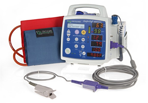 Designed to travel everywhere you do, the VitalCareTM 506NV3 series patient monitor with integrated carry-handle attaches quickly and easily to a rolling stand. Available in multiple configurations – with choice of Criticare or Nellcor oximetry – the 506NV3 patient monitors provide maximum versatility and cost-effectiveness. New smart battery management allows up to 100 NIBP measurements on a single charging. With a compact design that is easily setup for spotcheck or continuous monitoring, the 506NV3 patient monitor adapts readily to hospital, clinic and transport requirements.