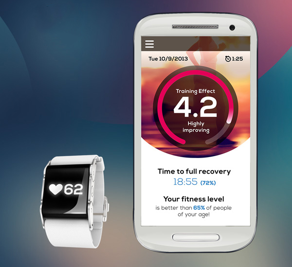 PulseOn, a spinoff of Nokia, has developed a heart rate monitoring wristwatch for athletes and fitness enthusiasts to improve how they train and exercise. An optical sensor on the back of the watch detects the pulse through the wrist and built-in algorithms make sure the readings are accurate in different situations. Wireless connectivity via Bluetooth lets the watch send its data to a companion iOS/Android smartphone app that helps interpret the readings, set goals, and keep track of calories burned.