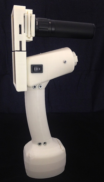 The system consists of a phone case, a 10x zoom lens that snaps onto the case, and a supporting base with a built-in light source. The firm also provides a cloud storage for the images taken with the device so that healthcare organizations can track screenings, go back and review, and do some statistical measurements.