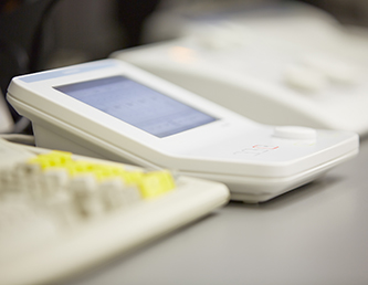 The device includes both touchscreen and regular button controls, with the display anticipating and showing menus most applicable to the physician at any given time. It also features personalized, multi-channel protocols.