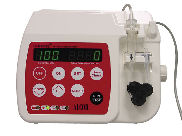 Known as the "work horse" of the industry, the patent-pending Sentinel Enteral Feeding Pump is reliable, durable, and simple to use. The Sentinel enteral feeding pump employs a number of mechanical features to ensure that the enteral pump set does not dislodge. This system works to protect against unintentional set removal.