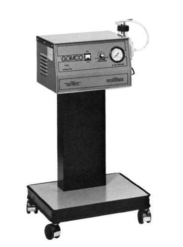 Gomco® stand-mounted units offer dependable, easy to regulate suction for hospital use. Stands include 3" non-marking casters, handy cord storage, chemical resistant stainless steel top, compact stand design, graduated 600 ml glass collection bottle or 1100 ml disposable canister, hydrophobic bacteria filter to help prevent fluid and aerosol contamination, hospital grade plug, and are UL listed and ULC certified.