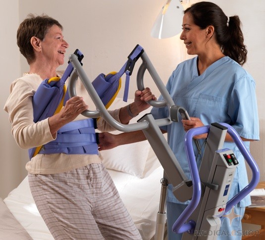 ArjoHuntleigh Sara Lite power standing and raising aid is designed to fulfill basic needs of a versatile, easy-to-use lift. Sara Lite makes caregivers everyday care routines easier and safer, as no manual lifting is needed. Sara lite power stand up lift has a detachable 24V high-capacity battery, including Low-Charge Indicator to be charged in a separate charger.