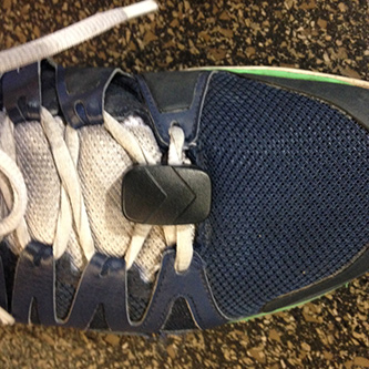 The Amiigo includes both a wristband and a shoe clip sensor for improved tracking accuracy. The wristband and the shoe clip contain 3-axis accelerometers to accurately track the user’s motion. The wristband also contains a thermometer to measure body temperature and a pulse oximeter to measure blood oxygen saturation. The wristband is made of ABS plastic and polycarbonate, and the shoe clip is made of ABS plastic. The user wears the shoe clip ideally over two shoe lace crossings in order to get a secure fit.