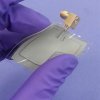 This patterned material forms the radiating element of a microstrip patch antenna. By manipulating the shape and dimensions of the radiating element, the researchers can control the frequency at which the antenna sends and receives signals. The radiating layer is then bonded to a “ground” layer, which is made of the same composite, except it has a continuous layer of silver nanowires embedded.