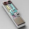 Within the device are a bunch of channels that move the saliva sample and reagents that prepare it for final mixing with antibody coupled nanoparticles.